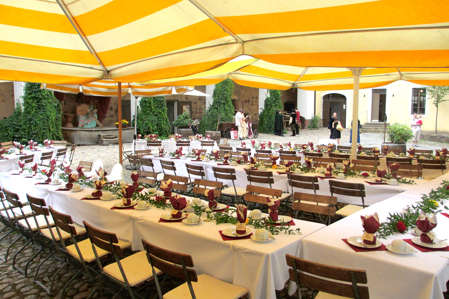 Für einen gemütlichen Nachmittag bei Kaffee und Kuchen laden unsere unterschiedlichen Räume und unsere Außenterrassen ein. Lieben Sie und Ihre Gäste es etwas deftiger, treffen Sie mit unserer Rittertafel die richtige Wahl. In den Sommermonaten ist unser Biergarten im Arkadenburghof besonders beliebt. Sagen Sie uns Ihre Wünsche.
